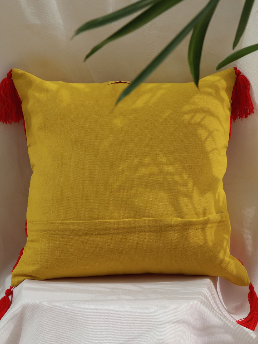 Pink Decor Embroidered Umbrella Yellow Cushion cover (16x16 Inch) (40x40 Cm)