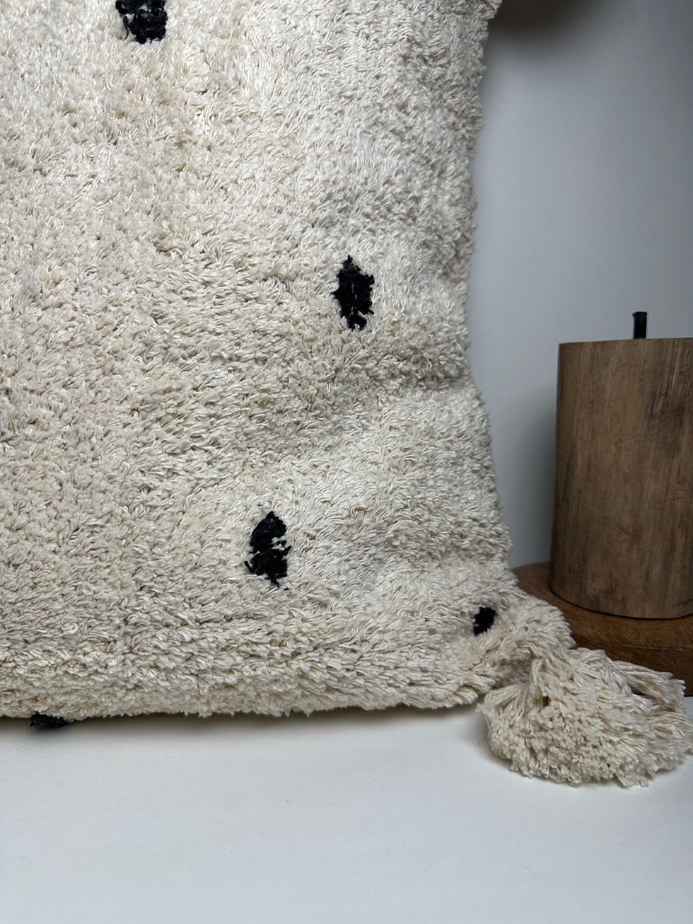 Made from 100% cotton, this pillow is soft and inviting, perfect for cuddling up on the couch or adding a touch of cozy comfort to your bed. The tufted texture and playful tassels add a touch of whimsy and fun, making this pillow a great way to add personality to your home décor.
